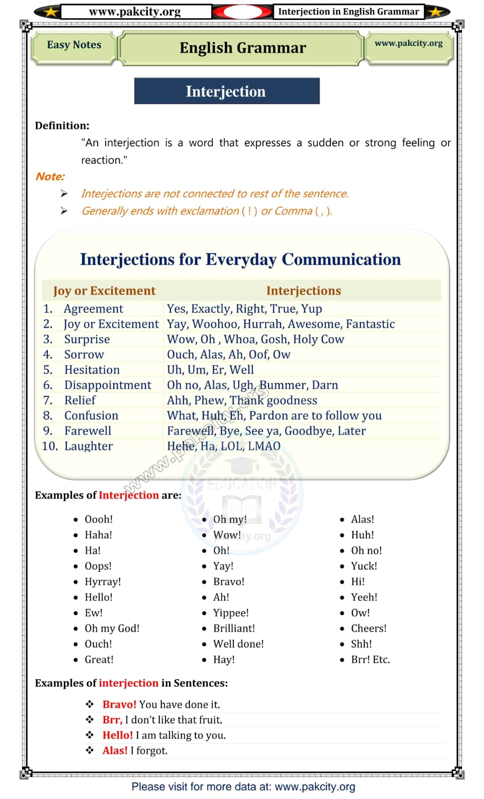 - 2. Definition of Interjection for Joy with examples, and also examples of Interjection for Joy in sentences.